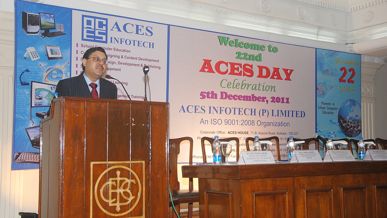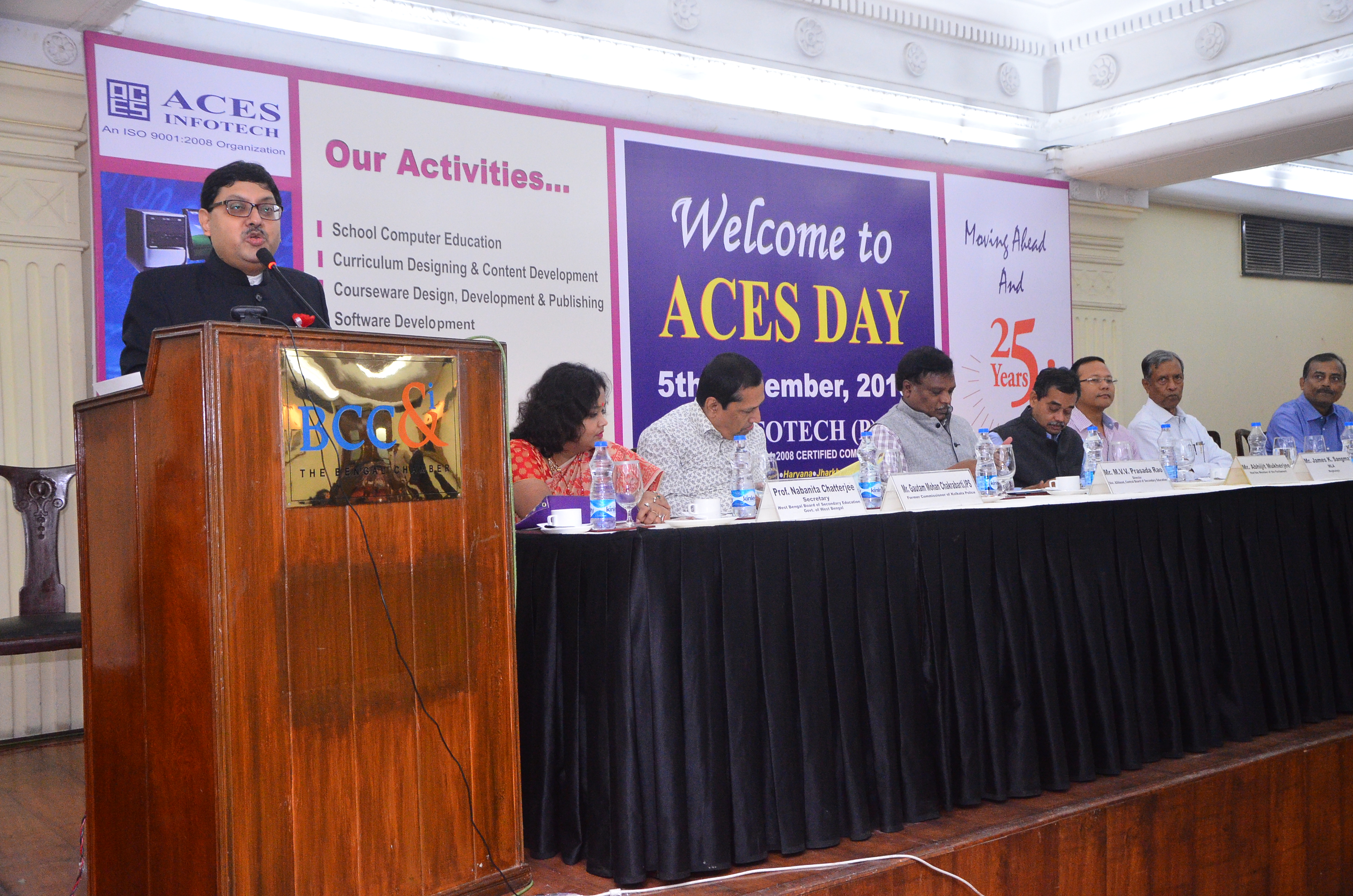 19th "ACES Day ": Dignitaries present in the podium are, Dr. R. Lalthangliana, then Hon. Minister for Education, Government of Mizoram, Shri Bandhu Tirkey, then Hon'ble Minister for Education, Government of Jharkhand, Shri James Sangma, then Dy. Minister, Department of Education, Government of Meghalaya, Ms. Ampareen Lyndon, then Dy. Minister, Department of Education, Government of Meghalaya, Dr. Abdus Sattar, then MIC, Minority Affairs & Madrasah Education, Government of West Bengal, Shri Gautam Mohan Chakrabarti, then Commissioner of Kolkata Police, Shri Pratap Mohanty, then Director, MHRD, Government of India and many others...